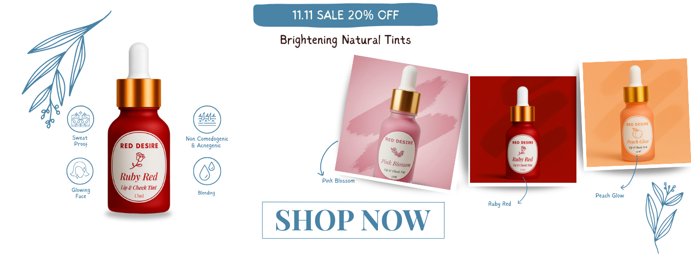 In a beauty world full of filters, cakey layers, and complicated routines, Red Desire was born out of a craving for something real—something that enhances your natural charm, not hides it. We wanted every swipe of our tints to feel like you, just more radiant.